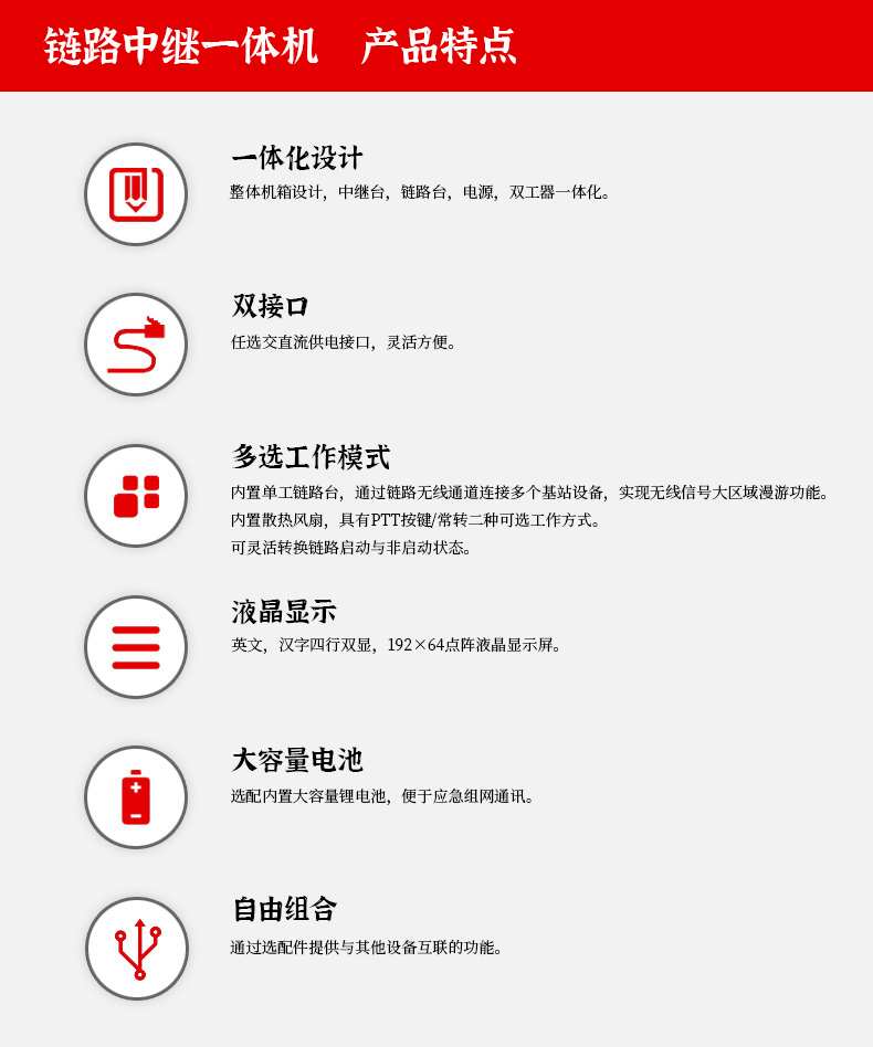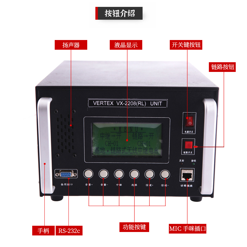 • 中繼和鏈路機一體化集成模擬電臺,220VAC供電,攜帶,安裝架設方便